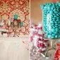 Starlit Nest Gifts - Beautiful! I love the flowers, hot pink damask wallpaper, peacock feathers, sweets, and the beautiful models! It was fun to see the flags from my shop in the background. Wonderful job Kay!